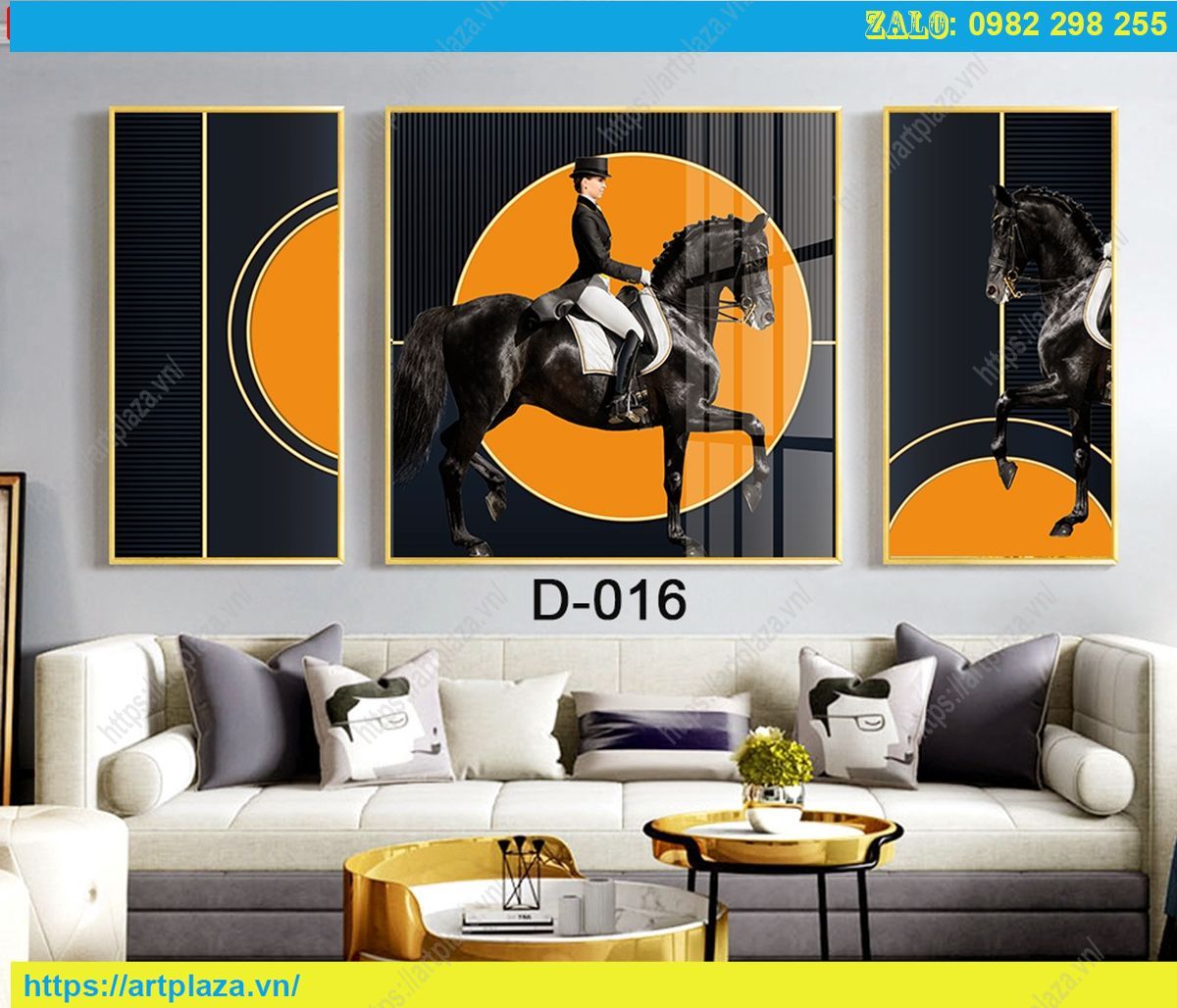 Tranh tráng gương bộ 3 hiện đại 016 là một trong những mẫu tranh mã đáo đẹp