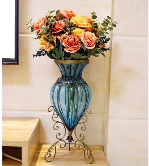 Mẫu bình cắm hoa thủy tinh chân sắt mỹ thuật thiết kế cổ điển Châu Âu