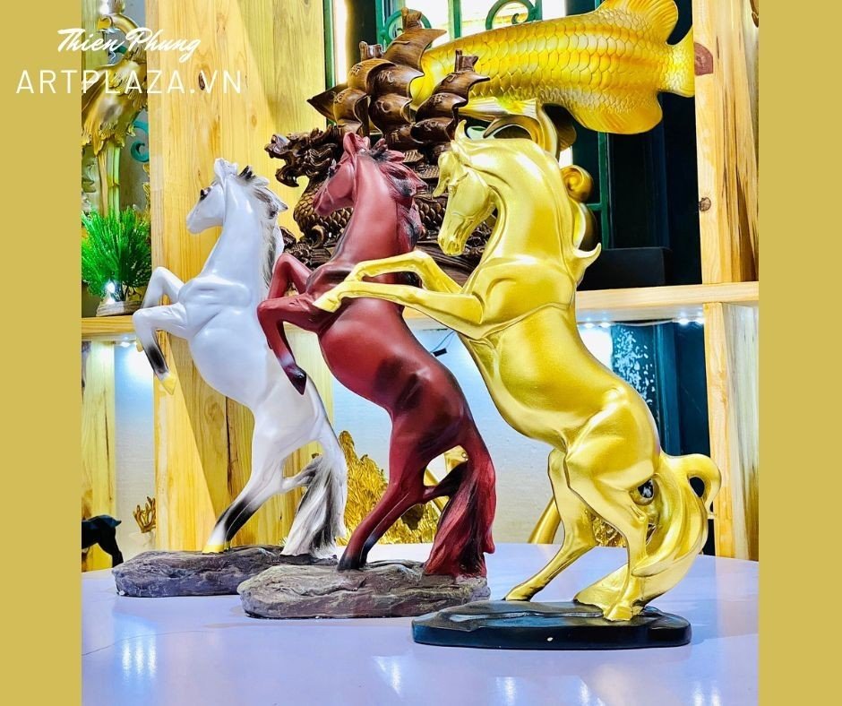 ► Kích thước sản phẩm: Ngựa (trắng, đỏ) cao 35 cm, ngang 16cm, dày 6.5cm - Ngựa vàng cao 32cm, ngang 24cm, dày 7cm